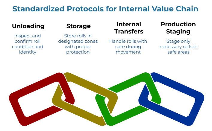 Inspect the receipt. Use the right equipment. Move rolls through approved routes. Train operators on roll-specific risks. Document every handoff. Treat short transfers with the same discipline as unloading.